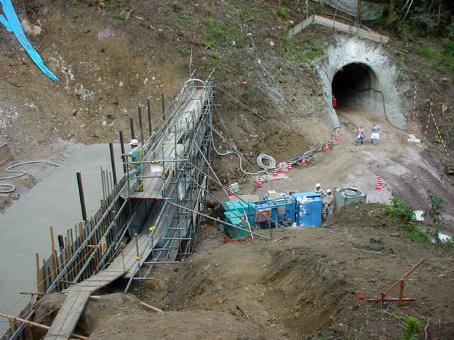 ・打設状況図(右上に見える小さなトンネルが作業坑)